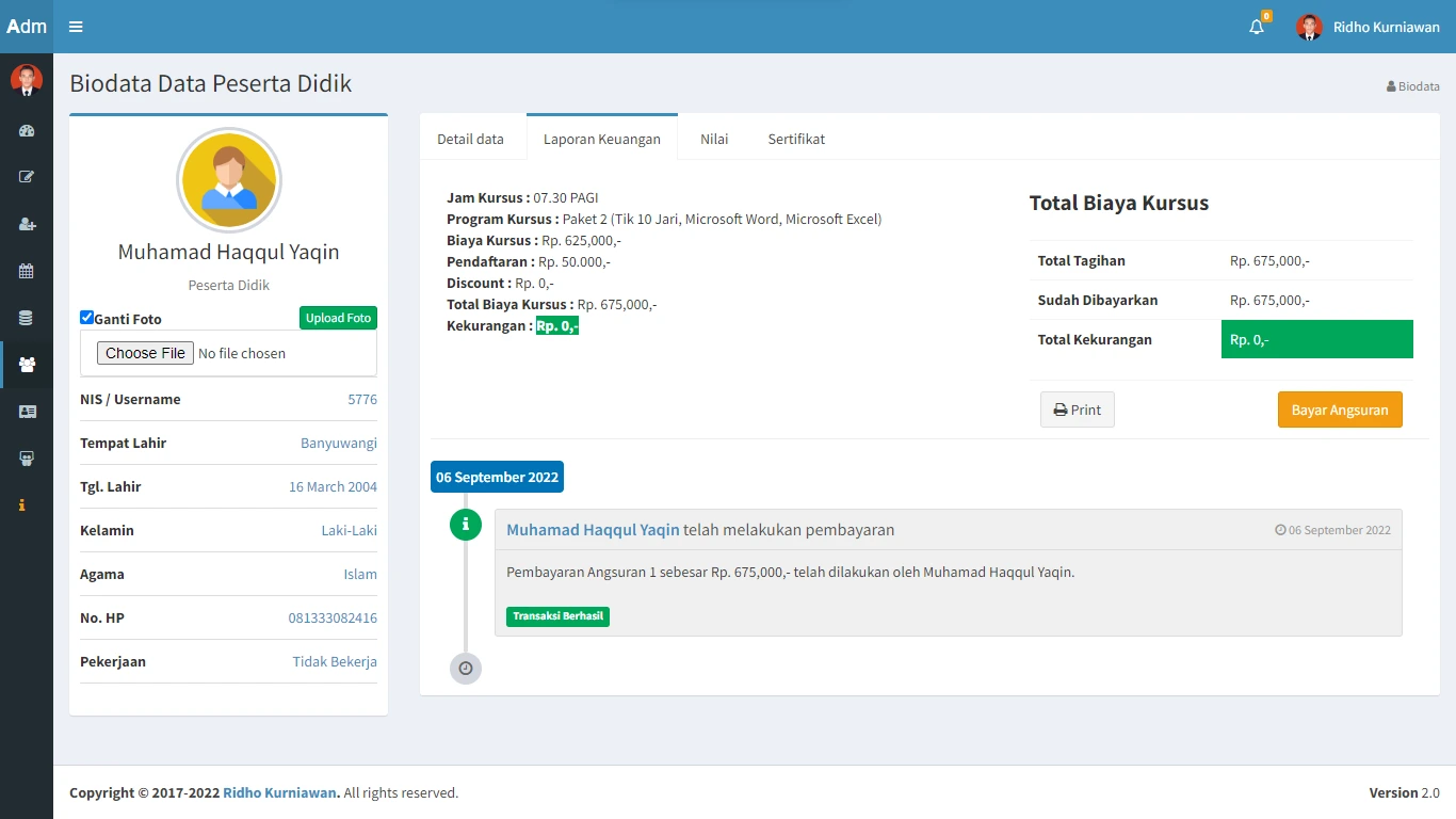 I have also created several applications ranging from POS applications to Material Stores using PHP Native (MVC), School Web (Wordpress) and Courses using the Codeigniter Framework, PPDB Applications, School Management Applications, Student Information Systems etc. I also open an application development service for students who are confused about their thesis. I can also process data through excel to get information and have analyzed data using SPSS in my master's studies for research.
